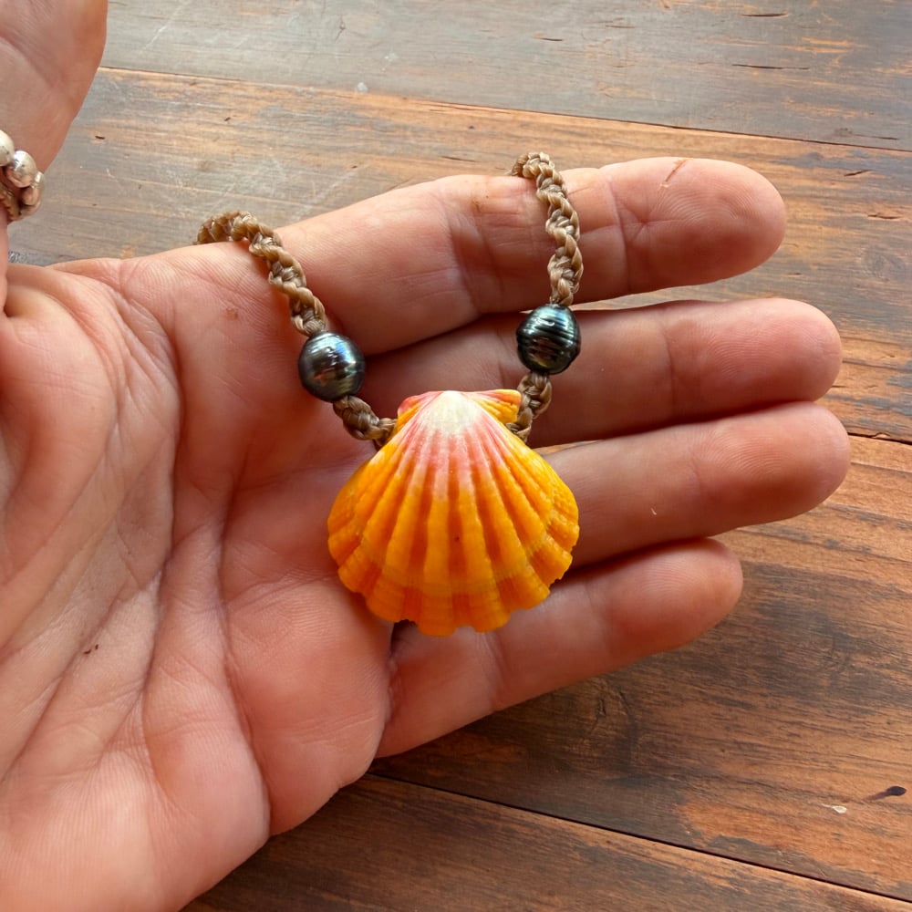 Hawaiian sunrise shell necklace with Tahitian pearls 18 inch